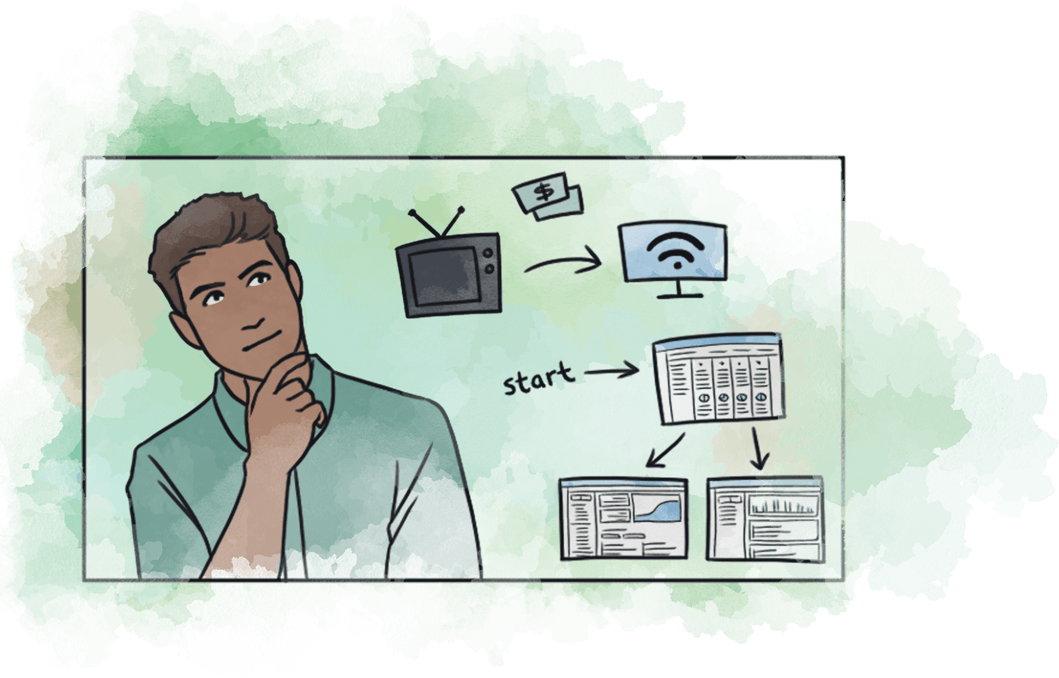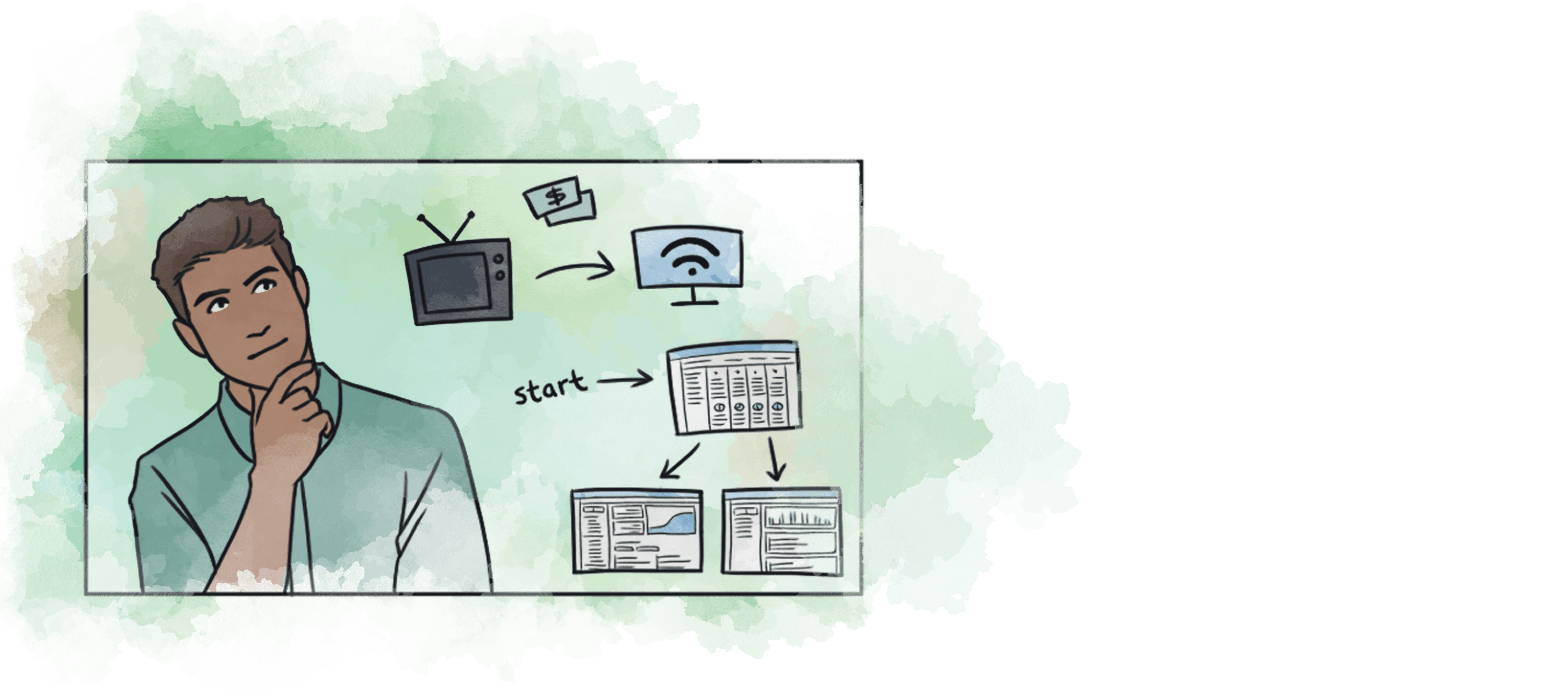 Storyboards for a design-led product pitch for a comprehensive ad campaign planning tool.
